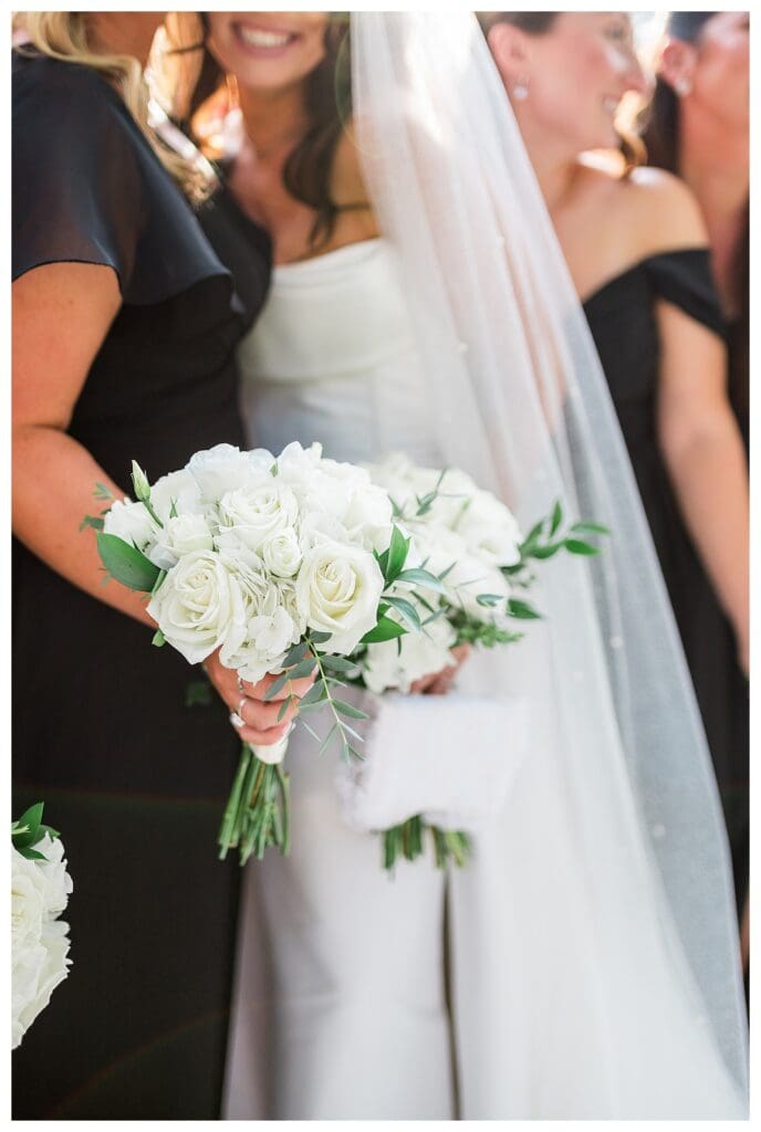 Nicole and Alec kept their wedding party look clean and bold. Black dresses for the bridesmaids. Black suits for the groomsmen. It felt city chic and timeless.