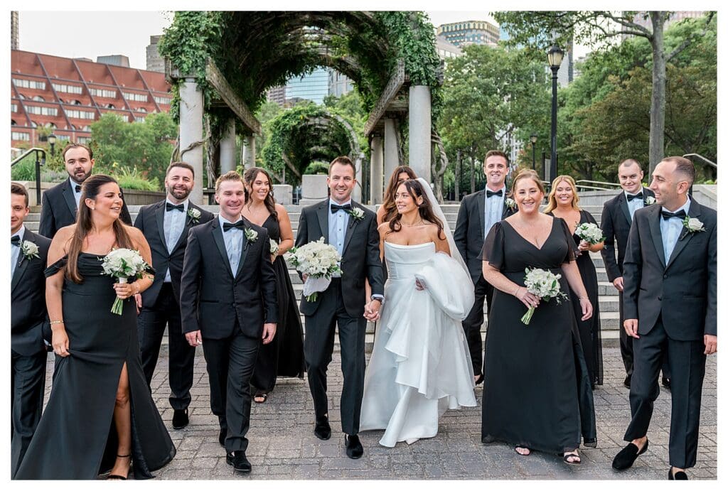 We headed to Christopher Columbus Park for wedding party portraits. The steps and green space gave us strong lines and a classic Boston feel. The group looked polished but still relaxed.